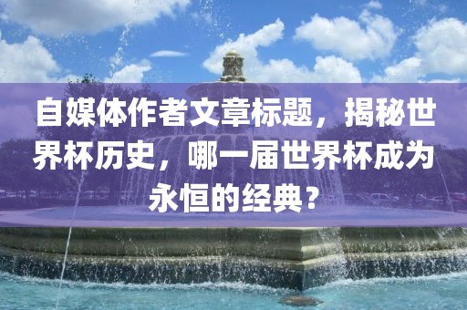 转载请注明来自河南立本管道设备有限公司,本文标题:《自媒体作者文章标题,揭秘世界杯历史,哪一届世界杯成为永恒的经典?》