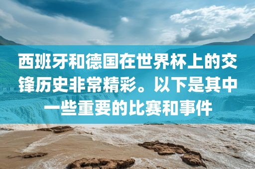 西班牙和德国在世界杯上的交锋历史非常精彩。以下是其中一些重要的比赛和事件