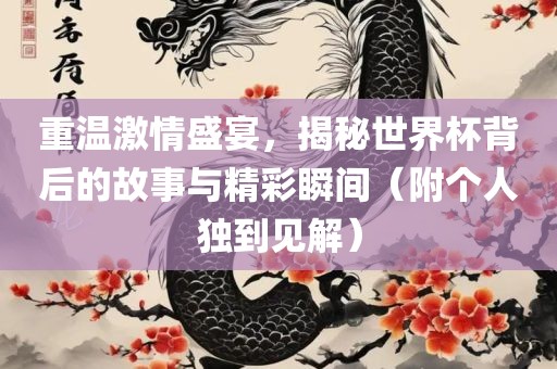 转载请注明来自河南立本管道设备有限公司,本文标题:《重温激情盛宴,揭秘世界杯背后的故事与精彩瞬间(附个人独到见解)》