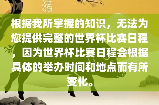 建议您通过官方渠道或相关新闻获取最新的世界杯比赛日程,您可以关注国际足联(FIFA)的官方网站、社交媒体账号或相关体育新闻网站,以获取最准确和最新的世界杯比赛日程信息。
