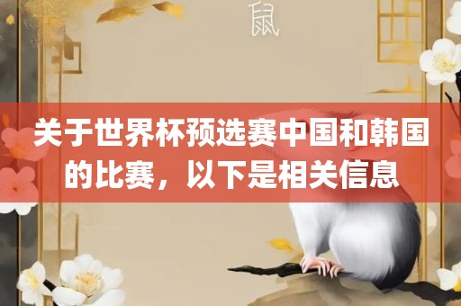 在世界杯预选赛中,中国和韩国都是亚洲地区的足球强队,两队之间的比赛总是备受关注,以上信息仅供参考,如需了解更多关于世界杯预选赛中国和韩国比赛的信息,请查询相关体育新闻或咨询相关人士。