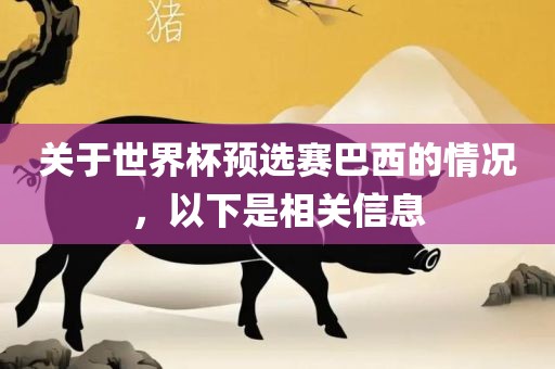 摘要:关于世界杯预选赛巴西的情况,目前巴西足球队表现出色,在预选赛中展现出了强大的实力和潜力。巴西队员技术娴熟,配合默契,展现出极高的竞技水平。在比赛中,巴西队展现出了强烈的进攻意识和出色的防守能力,赢得了众多比赛。巴西队也面临一些挑战和竞争,需要继续保持团队精神和努力备战,以确保顺利晋级世界杯。