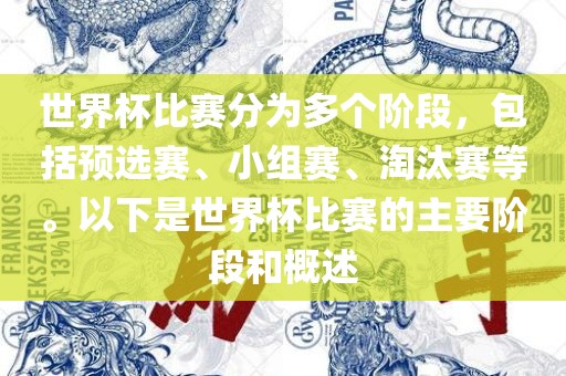 世界杯比赛分为多个阶段,包括预选赛、小组赛、淘汰赛等。以下是世界杯比赛的主要阶段和概述