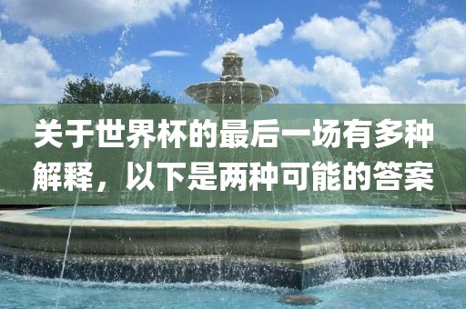 转载请注明来自河南立本管道设备有限公司,本文标题:《关于世界杯的最后一场有多种解释,以下是两种可能的答案》